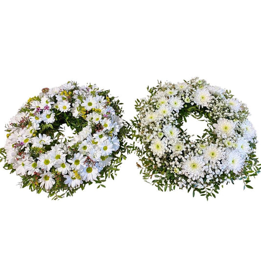 Coroana Funerară cu Trandafiri Albi, Crini și Orhidee Albastre