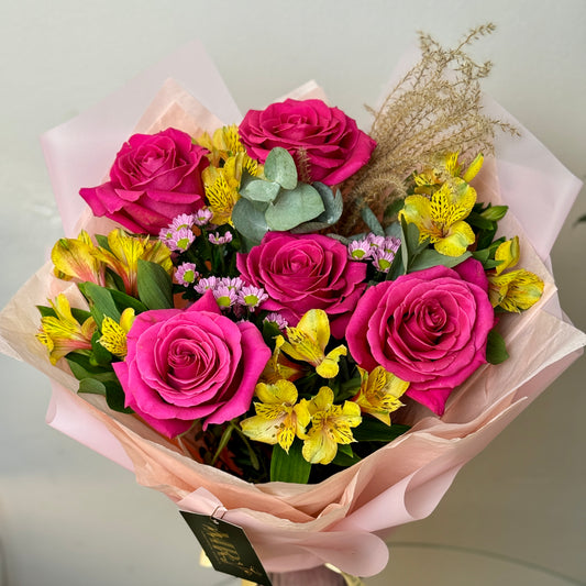 Buchet cu Trandafiri Fucsia și Alstroemeria