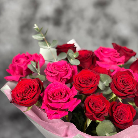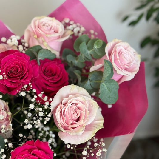 Buchet cu Trandafiri Roz Pal și Fucsia