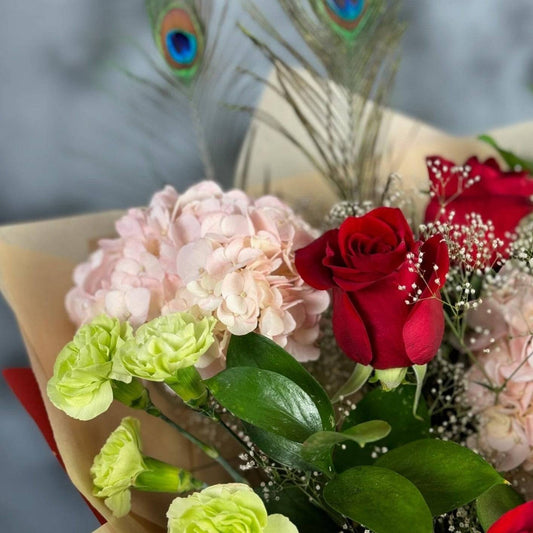Buchet Colorat cu Hortensii, Trandafiri și Flori Mixte
